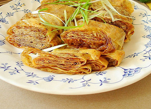 此菜是四川羅江縣著名風(fēng)味素菜。以黃豆為主料,磨成豆?jié){。制成油皮,裹以芝麻末,經(jīng)蒸制而成。顏色棕黃,綿軟干香,咸香鮮麻。