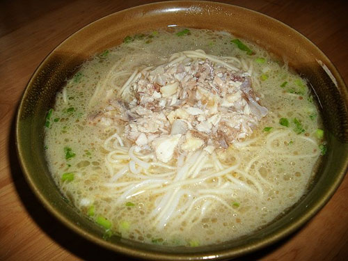 奶湯面起源于四川邛崍,因面湯如奶而得名。店家在頭天晚上將豬骨、雞骨放進(jìn)鍋里,用微火熬煮,一直熬到清晨,湯由清變白咸了奶狀。此時(shí),一掀鍋蓋,那縷縷的香氣就會(huì)撲鼻而來。用這種奶湯煮面,加上雞絲、酸菜肉絲等臊子,吃起來非常可口。