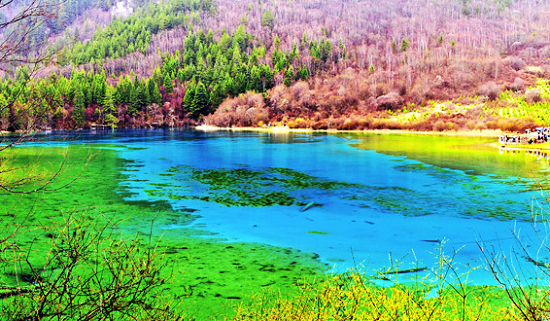 九寨溝的靈魂是水,只有到了九寨溝,你才會(huì)發(fā)現(xiàn),世上所有形容水的美麗字句,在九寨溝的水面前會(huì)顯得多么的蒼白。因此,用文字來(lái)描述九寨溝的水之魅力,以及刻畫水在各種季節(jié)、樹木的環(huán)境寫的不同妖繞是很沒有說(shuō)服力的,而膠片卻可以在更大程度上記錄這一切,對(duì)于愛好攝影的蜜月中的人們來(lái)說(shuō),除了攝影,在這樣的環(huán)境中手牽著手走過(guò),會(huì)油然生出《天仙配》的感覺。