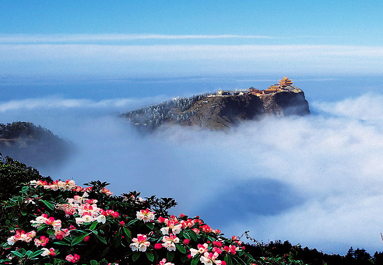 峨眉山位于四川峨眉山市境內(nèi),景區(qū)面積154平方公里,地勢陡峭,風(fēng)景秀麗,有“秀甲天下”之美譽(yù)。峨眉山又是中國四大佛教名山之一,寺廟眾多,特別是金頂,更是寺廟和景點(diǎn)集中之處,游客可在陡峭的巖邊欣賞日出、云海、佛光、圣燈四大奇景。如果天氣晴朗,還可遠(yuǎn)眺貢嘎雪峰。所謂佛光,是從金頂?shù)亩霉馀_(tái)遠(yuǎn)望,臺(tái)前白云平鋪,陽光照在云層上,可見明亮艷麗的七彩光環(huán),被稱之為“佛光”。據(jù)說影入佛光可獲吉祥,故名金頂祥光。云海是金頂另一奇觀,每當(dāng)晴空萬里時(shí),深谷霧起,彌漫于睹光巖前,越積越厚,一望無涯;峨眉頂部諸峰在茫茫云海中猶如孤島。如空中無風(fēng),云面似鏡,寂靜無聲,仿佛置身于蓬萊仙境;如遇風(fēng)起,云海波濤翻滾,猶如萬馬奔騰,氣勢磅礴,非常壯觀。而“圣燈”,實(shí)際上是有大自然中的磷化氫燃燒而產(chǎn)生的——月黑風(fēng)清的夜晚,巖下幽谷就會(huì)閃出這種光亮,產(chǎn)生一種奇妙的效果。