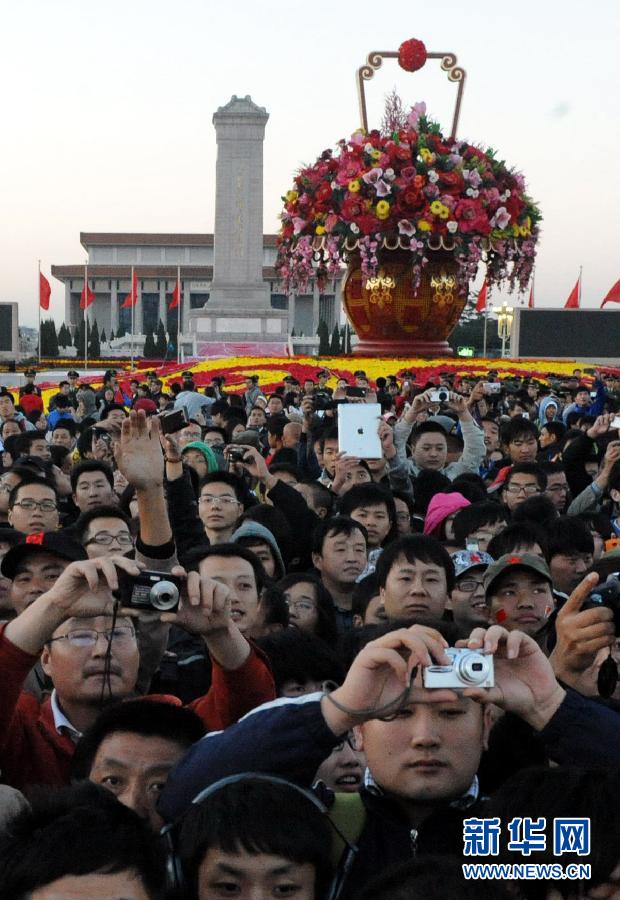 10月1日,群眾在天安門廣場觀看升國旗儀式。當(dāng)日,來自全國各地的數(shù)萬名群眾聚會北京天安門廣場,觀看升國旗儀式。