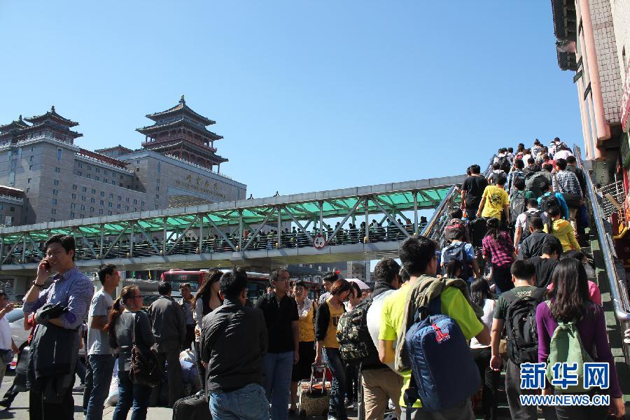 9月30日,北京西站橋人頭攢動(dòng)。當(dāng)日是今年中秋國(guó)慶黃金周的第一天,也是中國(guó)高速公路對(duì)小型客車實(shí)行免費(fèi)通行首日,全國(guó)各地客流、車流洶涌,各級(jí)有關(guān)部門正全面迎戰(zhàn)“最長(zhǎng)黃金周”。據(jù)介紹,2012年中國(guó)傳統(tǒng)節(jié)日中秋節(jié)和國(guó)慶節(jié)連在了一起,連續(xù)8天的“最長(zhǎng)黃金周”里,約有一半中國(guó)人——總計(jì)約7.4億人次,要通過(guò)公路、鐵路、民航等出行,創(chuàng)下同期出行新紀(jì)錄,中國(guó)交通管理部門承受巨大壓力。據(jù)預(yù)計(jì),黃金周期間,中國(guó)公路水路客運(yùn)量將達(dá)到6.6億人次,日均8250萬(wàn)人次,較去年同期增長(zhǎng)8.8%。鐵路方面,長(zhǎng)假出行高峰日甚至“不亞于春運(yùn)”。9月27日至10月7日,全國(guó)鐵路預(yù)計(jì)發(fā)送旅客7540萬(wàn)人,日均近700萬(wàn)人。除了史無(wú)前例的長(zhǎng)假,全國(guó)公路小客車節(jié)假日免費(fèi)通行政策的首度實(shí)施無(wú)疑將改變?cè)S多人出行的選擇,這也將給“最長(zhǎng)黃金周”帶來(lái)不小的挑戰(zhàn)。