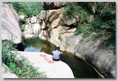 鳳鳴瀑頂端,緊連著一個(gè)長(zhǎng)40余米的槽狀深潭,潭水中陷有一心形巨石,名良心石。一塊偌大的板狀塊石深入潭中,稱洗心石。潭左側(cè)上部有巨石疊壘成一個(gè)面積達(dá)10多平方米的棚洞,其間平整可居,名省心洞。