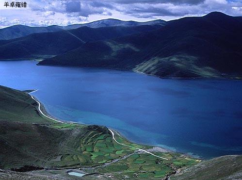 羊卓雍錯(cuò)被譽(yù)為世界上最美麗的水。羊卓雍錯(cuò),“羊”,上面,;“卓”,牧場(chǎng);“雍”,碧玉;“錯(cuò)”湖。連起來就是“上面牧場(chǎng)的碧玉之湖”。這是字面上對(duì)羊湖的解釋,而羊湖在藏人心目當(dāng)中被看做是“神女散落的綠松石耳墜”,因?yàn)闊o論你在那個(gè)角度,都不能看到羊卓的全貌,她有三個(gè)姐妹,空母錯(cuò),沉錯(cuò),巴久錯(cuò),以即古羊卓雍錯(cuò)四姐妹在巨大的湖盆中,手足相連,難以割舍,共同組成了讓我們?nèi)庋劭床坏竭叺氖ズ。她的身軀蜿蜒在群山中達(dá)一百三十多公里,只有在地圖或是高空你才能驚喜的發(fā)現(xiàn)她猶如耳墜,鑲嵌在山的耳輪之上。不同時(shí)刻陽光的照射,她會(huì)顯現(xiàn)出層次極其豐富的藍(lán)色,好似夢(mèng)幻一般。