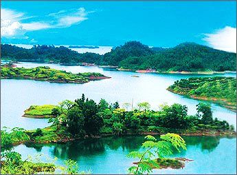 千島湖因其山青、水秀、洞奇、石怪而被譽(yù)為“千島碧水畫中游”。它的湖區(qū)面積573平方公里,湖中擁有形態(tài)各異的大小島嶼1078座,平均水深34米,能見度最高達(dá)12米,屬國(guó)家一級(jí)水體,被原新華社社長(zhǎng)穆青贊譽(yù)為“天下第一秀水”,整個(gè)湖區(qū)分為東北、東南、西北、西南、中心五大湖區(qū)。千島湖碧波萬(wàn)傾,千島竟秀,群山疊翠,峽谷幽深,溪澗清秀,洞石奇異,還有種類眾多的生物資源,文物古跡和豐富的土特產(chǎn)品,構(gòu)成了享譽(yù)中外的島湖風(fēng)景特點(diǎn)。近年來(lái),經(jīng)過(guò)大規(guī)模的改造和建設(shè),已形成了品位較高、內(nèi)涵豐富的羨山、屏峰、梅峰、龍山、動(dòng)物野趣、石林六大景區(qū)的14處景點(diǎn)。