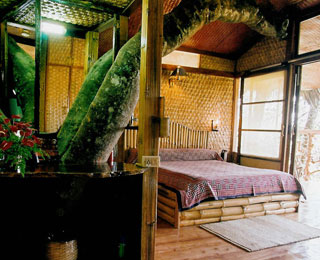 5.安寧度假村 (印度喀拉拉邦 內(nèi)瓦亞納德) 該度假村座落在卡拉拉邦熱帶雨林中,擁有8個設(shè)備齊全的房間,總面積達500平方英尺,由咖啡木建造而成。房內(nèi)設(shè)有國王式豪華大床,洗澡間和陽臺。一棵鳳凰木樹干穿過臥室。游客需通過樓梯,繩橋和“汲水工具”進入此樹屋。