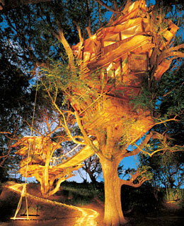 此樹屋建造在羅望子樹上,被譽(yù)為“空中海灘”,屋內(nèi)有照明設(shè)施,但不提供熱水浴。游客可以通過繩子和木板搭起來的懸橋進(jìn)入樹屋。