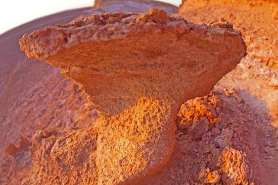 他發(fā)現(xiàn)形成眼前這種奇特的地貌,離不開三個(gè)條件:首先必須是在干旱區(qū)的古沖積平原,湖水干涸,地面龜裂。