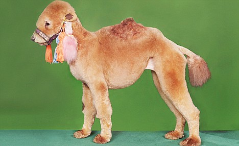 據(jù)英國媒體報道,美國一名專業(yè)寵物美容師,用無害的食用色素、粉筆等原料,再加上獨特的裁剪,將自己的卷毛小狗Cindy裝扮成駱駝、公雞、孔雀甚至是一只忍者神龜!而Cindy也因為亮麗奇特的造型,在寵物造型比賽中多次獲獎。