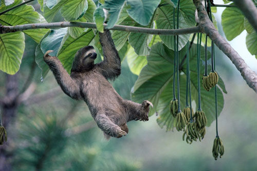 雖然三趾樹獺移動很緩慢,但是它們可以表達高難度“特技”,它們攀爬、懸吊和移動于樹枝之間,其柔軟的關節(jié)和長而有力的前肢使得它們行動十分靈活。