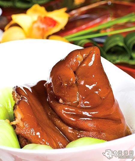紅燒蹄旁:色澤紅艷,一上桌就能聞見香味。