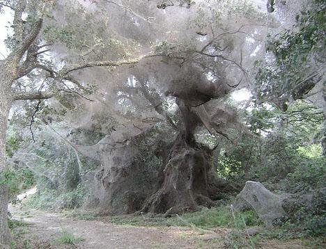 7、蜘蛛:世界上最大的網(wǎng)來自12個(gè)不同物種的數(shù)千只蜘蛛共同合作,在美國德克薩斯州北部公園編織出了一個(gè)令人驚嘆的巨型蜘蛛網(wǎng),該蜘蛛網(wǎng)的跨度為600英尺。