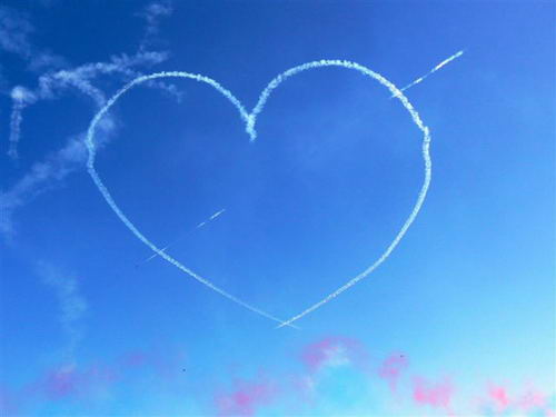 英國特技飛行隊(duì)在威爾士上空經(jīng)過留下的“桃心云”