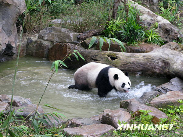 2月14日,“圓圓”在池中戲水。新華社記者王妍攝