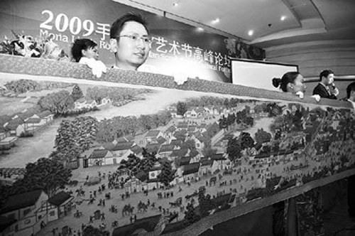 此次刺繡工程自2008年7月20日起,至2009年1月20日完工,共繡制出人物814個(gè)、牲畜83匹、船只29艘、房屋樓宇30多幢、車13輛、轎8頂、橋17座、樹木180棵。