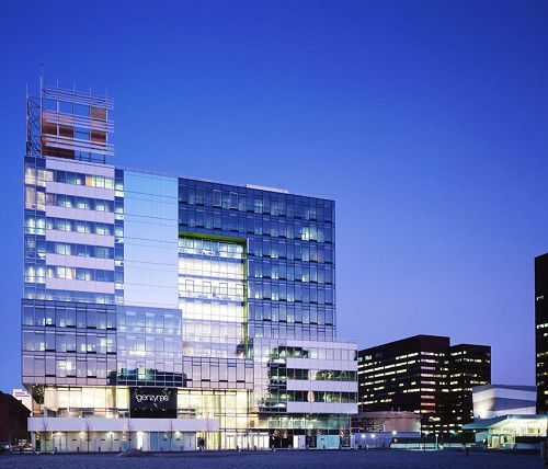 基因酶辦公樓屹立在美國麻省劍橋市。具有通風(fēng)的雙層立面系統(tǒng),能夠在夏天阻擋陽光,而在冬季捕獲陽光。同時(shí),“回收制冷制熱系統(tǒng)”有夏天散熱冬天取暖的功能。它相比普通的辦公大樓要節(jié)約32%的能源消耗同,而修建該建筑的材料也是低排放的、可循環(huán)利用的或是本地制造的材料。