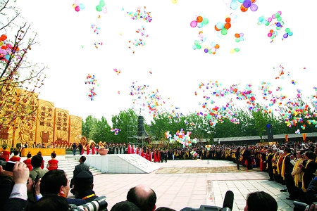 丁亥年黃帝故里拜祖大典融入諸多“祥云”元素。比如黃帝故里景區(qū)前的百家姓廣場,整個(gè)廣場采用祥云構(gòu)圖,寓意“踩祥云之上,觀百家姓,唱和諧歌,暢想民族騰飛之未來”,使姓氏文化作為增強(qiáng)中華民族凝聚力的重要內(nèi)容。 大典舉行時(shí),天空祥云悠悠,與地面上的“祥云”遙相呼應(yīng)。