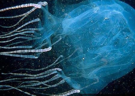 雖然人類必須被至少10米長(zhǎng)的觸角纏住,才會(huì)被注射能致命的毒液量,可一只燈水母就有60只觸角,而且每只觸角長(zhǎng)達(dá)9米,其刺絲囊滿滿地排列在上面,所以人類在海里一旦被它的觸角粘上,通常是必死無(wú)疑。不過(guò),燈水母的刺絲囊只有在接觸到人類皮膚表面或覆有鱗片的皮膚時(shí)才會(huì)因化學(xué)作用起反應(yīng),因此想保住性命,就得在你的皮膚與燈水母之間放置障礙物。于是,足智多謀的澳洲海岸巡邏隊(duì)員在巡邏海灘時(shí)會(huì)在手腳上穿戴女式長(zhǎng)筒絲襪。嗬嗬!只有燈水母才能讓澳洲的男子漢們丟盡男子漢氣概,第一名不是它又能是誰(shuí)呢?