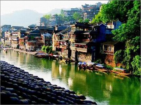 湘西的鳳凰古城,也是近年都市人旅游的熱點(diǎn)。每到春天,鳳凰的沱江旁,成千上萬(wàn)大大小小筒車,吱吱攸攸地轉(zhuǎn)動(dòng),用河水澆綠田園和山莊。苗族、土家族的人們,用古老的方法榨油、造紙、碾米、織布,用筒車提水灌田,小城四處一片平和景象。都市繁忙的人們,在這里將圓你一個(gè)田園生活的夢(mèng)!