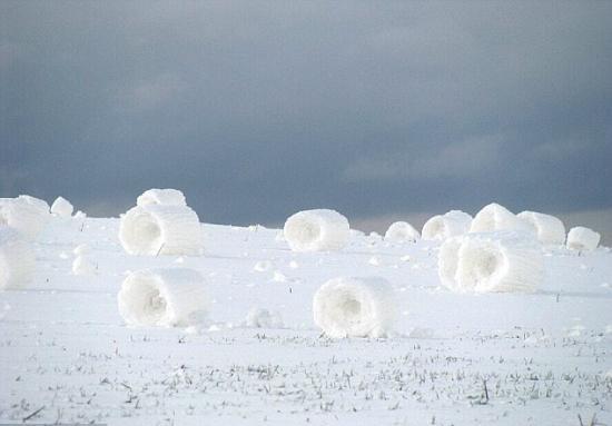自然界罕見的“雪卷”奇景