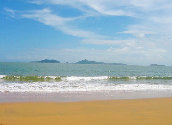 普陀山千步沙——海天佛國 位于浙江舟山市,是四大佛教圣地之一,觀世音菩薩的道場(chǎng),呈狹長形的普陀山恰似一座仙島,矗立在東海之上。是舟山群島山的一個(gè)小島。 在普陀山的東海岸,有一長約近兩公里的沙灘,稱為千步沙,是普陀山上最大的沙灘。沙面寬坦平緩,沙質(zhì)干凈柔軟,可與北海銀灘比美。沙灘北端有一巨石,植根沙間,潮落則石出,上書“聽潮”二字。經(jīng)過普陀山一天的旅游,傍晚時(shí)分在此洗個(gè)海水浴,既解乏又愜意,可充分感覺海天佛國的意境。