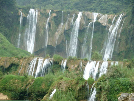 云南羅平九龍瀑布群 九龍瀑布以其幅寬、級(jí)多、差大、景觀非常豐富,層層疊疊,自成一絕,給人以幻境之中的感受,被《中國(guó)國(guó)家地理》組織的專家學(xué)者權(quán)威新聞機(jī)構(gòu)評(píng)選為中國(guó)最美麗的瀑布,成為游人向往的旅游目的地。