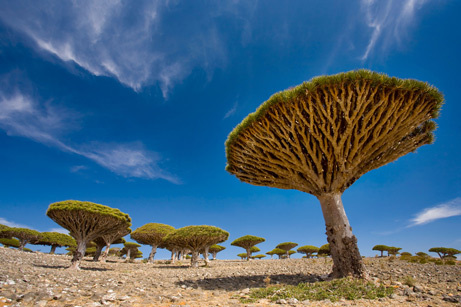 索科特拉群島位于印度洋附近的亞丁灣,長(zhǎng)250公里,由4座小島和2座巖石小島(顯然被看成是“非洲之角”一個(gè)延長(zhǎng)部分)組成。這里非常重要,因?yàn)樗厦嫔钪喾N生物,這座群島上有大量不同種類的植物和動(dòng)物:索科特拉島上825種植物中有37%的植物、90%的爬蟲(chóng)動(dòng)物和95%的蝸牛品種都是世界其他地方見(jiàn)所未見(jiàn)的。該地還是全球大量陸地鳥(niǎo)和海鳥(niǎo)的重要棲息地,其中包括很多受到威脅的鳥(niǎo)類。索科特拉群島上生活著192種鳥(niǎo)類,其中有44種在該島上繁殖后代,有85種定期遷徙。索科特拉島的海洋生物也非常豐富,有253種造礁珊瑚、730種沿岸魚(yú)和300種螃蟹、龍蝦和小蝦。