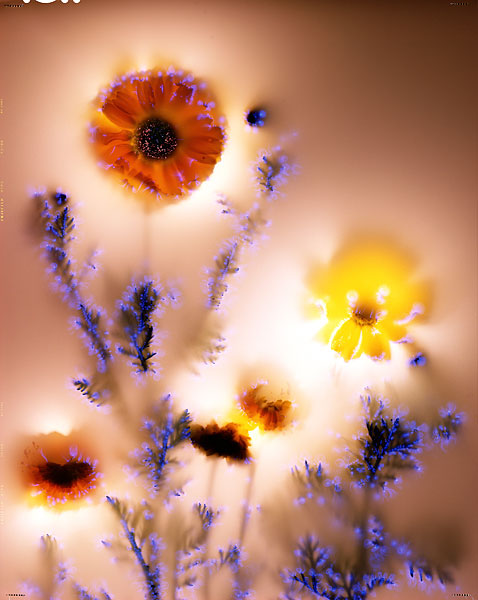 美國藝術(shù)家羅伯特·布爾特曼(Robert Buelteman)的著作《生命的符號》(Signs of Life)里收錄了他花費(fèi)10年心思制作完成的80幅花的作品。制作這些作品全部是在完全黑暗的環(huán)境中完成的,羅伯特把選定的花朵放在金屬板上,然后給金屬板通電,通過發(fā)射肉眼不可見的射線,花朵的影像通過來回反復(fù)的光纖傳輸?shù)侥z片上,最后就誕生了這一幅幅美輪美奐的作品。