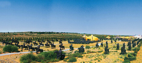 鐵馬金帳是世界上唯一完整展示成吉思汗軍陣行宮的大型實(shí)景雕塑群,再現(xiàn)了成吉思汗一生戎馬,征戰(zhàn)南北,橫跨歐亞,浩浩蕩蕩,氣勢磅礴,創(chuàng)建偉業(yè)的歷史畫卷,仿佛感受到成吉思汗指揮百萬大軍,奮勇出征、統(tǒng)一蒙古的真實(shí)場景。