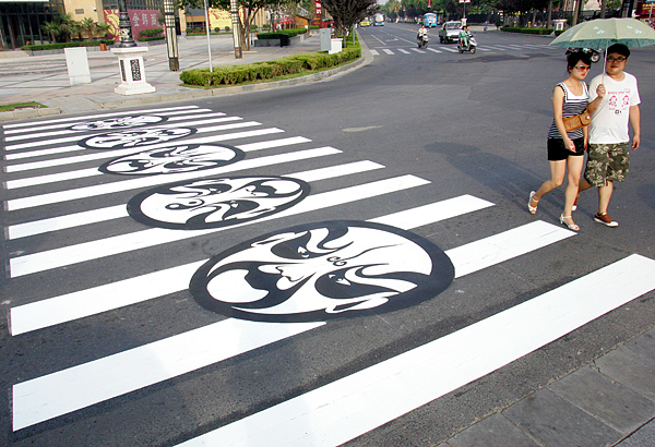 秦腔臉譜、關(guān)中皮影斑馬線亮相西安街頭