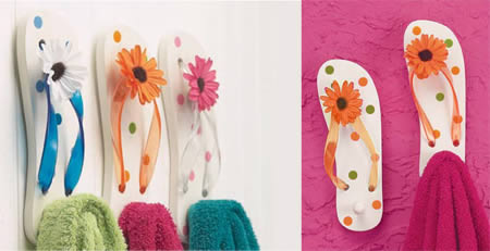 一雙雙漂亮的拖鞋粘貼在你家的墻上,成為了家居生活一道獨(dú)特的風(fēng)景,它們可不是用來沖涼時(shí)穿的,而是用于掛毛巾和衣服的墻鉤。