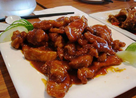 這道菜排第一位應(yīng)該不奇怪,酸甜混合的味道加上明亮鮮艷的外表,任誰都無法拒絕。有個(gè)MM的答案里寫有Sweet and Sour Chicken(NO PORK),看來這道菜在國外已經(jīng)很好的被改良了。