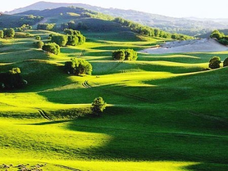 烏蘭布統(tǒng)大草原,由于處于丘陵與平原交錯地帶,呈現(xiàn)出與其它草原完全不同的特色,以其迷人的歐式草原風(fēng)光,成為聞名的影視外景基地。這里的草原廣闊,更有神奇的“百花草甸”景觀。影視基地一帶的草甸,每到夏季,草原上一片生機(jī),百花盛開,10余天換一茬花種。您這次來是黃色,過十余天再來也許就是粉色、紅色……