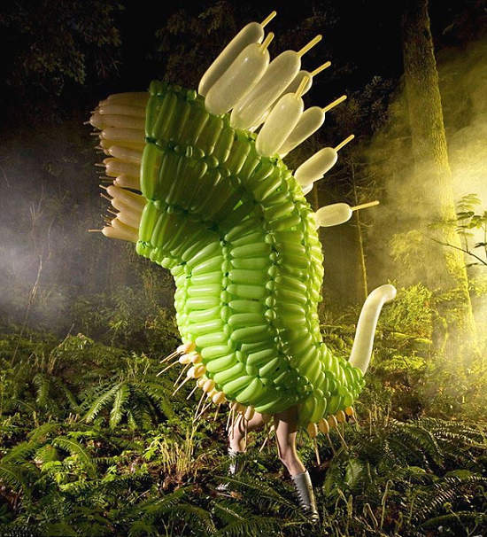 詹森每年都會花上萬美元購買五顏六色的氣球制作各種作品。有時是奇怪的動物、形態(tài)可異的昆蟲,或是外星人。2003年,他的作品開始在國際上展出,廣受關(guān)注。(李杰)