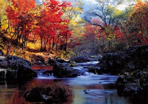 更難得的是,由于紅葉谷緯度高、霜期長(zhǎng),使這里紅葉色彩特別艷麗,而地處長(zhǎng)白山余脈和松花江流域的交匯地區(qū),又為這里在紅葉觀賞期形成五彩斑斕的效果提供了地理優(yōu)勢(shì)。