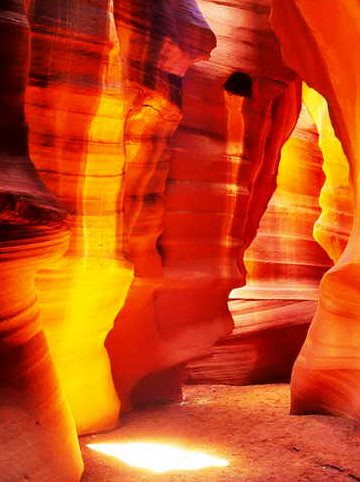 位于亞利桑那州南部鮑威爾湖邊上的下羚羊峽谷是由風(fēng)沙和湖水雕琢沙巖而形成的一種很抽象的形狀。從上面看,峽谷和亞利桑那其他峽谷沒有任何區(qū)別,但是從底部看,你會(huì)覺得自己深處一件很精美的藝術(shù)品中。峽谷的有些地方很狹窄,只允許一人通過。