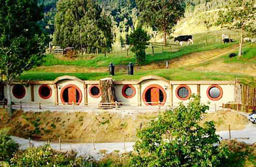 霍比特旅館是伍德萊公園(Woodlyn Park)的一部分,位于懷托摩螢火蟲洞(Waitomo Cave)附近,這個(gè)公園專門收集新西蘭奇形怪異的小屋。每個(gè)小屋都有形似艙口的窗戶。