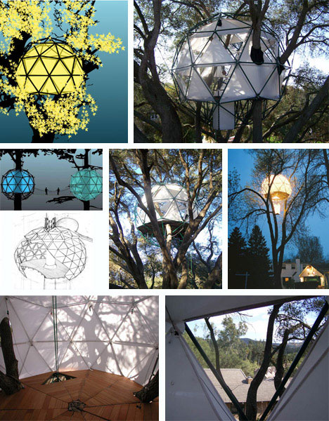 5、這種環(huán)保型樹屋打破了許多傳統(tǒng)樹屋概念上的束縛,放棄了傳統(tǒng)的小屋式木制結(jié)構(gòu),轉(zhuǎn)而用只需很少環(huán)保材料就能建造的敞亮穹頂結(jié)構(gòu)。這種樹屋可用作住宅和會議室。