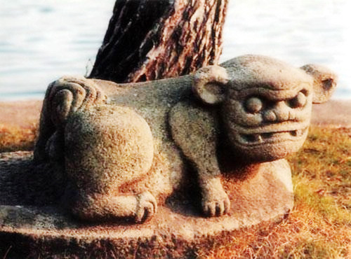 雷州境內(nèi)現(xiàn)存的古石狗約有二萬(wàn)只左右,年代較早的石狗是南北朝時(shí)期古雷州州治舊址附近的“石狗坡”的石狗,距今約有一千四百多年。目前,僅湛江、雷州等地博物館收集到的石狗已有一千多只。它們大小不等,有的咧嘴含笑,有的憨態(tài)可掬,有的面目猙獰,有的鼻大耳肥,或坐、或蹲、或伏,形態(tài)各異,年代久遠(yuǎn),世界絕無(wú)僅有,堪稱南方“兵馬俑”。
