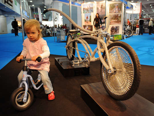 10月8日,2009自行車展在倫敦市中心開幕,超過11萬顆施華洛世奇水晶覆蓋的自行車成為有史以來最昂貴的自行車,該車由英國人本·威爾遜設(shè)計制造。