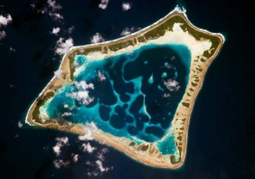 阿塔富環(huán)形珊瑚島由環(huán)繞一座火山側(cè)腹的珊瑚礁構(gòu)成,火山已被海水淹沒(méi),處于不活躍狀態(tài)。與很多熱帶環(huán)形珊瑚島一樣,阿塔富環(huán)形珊瑚島地勢(shì)很低,非常易受海平面上升影響。文中這幅照片是國(guó)際空間站上的宇航員于1月拍攝的。