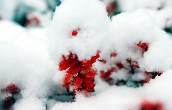 京城瑞雪 雪花晶瑩紅葉如丹