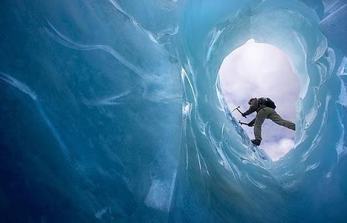 在這個隨時都會變幻的冰川上行走,你必須全神貫注,全身神經(jīng)緊繃,因?yàn)槟銚?dān)心會滑進(jìn)去。
