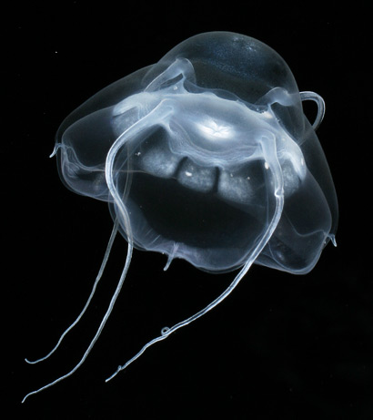 科學(xué)家在2009年12月表示,他們從2002年的標(biāo)本中發(fā)現(xiàn)了一個(gè)常見的水母種類——學(xué)名narcomedusa的新物種,并在2005年又確認(rèn)了數(shù)百個(gè),圖中所示便是在2005年發(fā)現(xiàn)的。蒙特瑞半島學(xué)院生物學(xué)家拉斯科夫表示,科學(xué)家在如此常見的水母群中發(fā)現(xiàn)新的種類,表明我們對(duì)北極的了解是多么有限。他補(bǔ)充說,水母是地球上科學(xué)家了解最少的動(dòng)物之一:“在動(dòng)物世界,它們看上去就像‘外星人’。