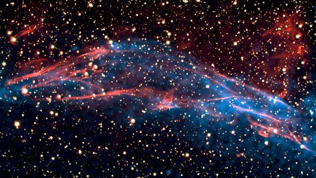 看一看大型強(qiáng)子對(duì)撞機(jī)的榜樣吧:扮演超高效粒子加速器角色的沖擊波。6月,錢德拉X射線天文臺(tái)的科學(xué)家公布了這張沖擊波穿過超新星殘余物RCW 86的照片,這張照片是從X射線和可見光范圍拍的?茖W(xué)家表示,雖然沖擊波運(yùn)行速度很快,但是它釋放出來的能量并沒像它應(yīng)該做的那樣,加熱周圍的氣體。這張新圖片顯示,額外的能量給粒子提供動(dòng)力,使它們以接近光速的速度沖向太空。