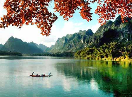 紅水河岸上風(fēng)光 處處是高聳的峰叢,放眼望去重巒迭嶂,高低錯(cuò)落變化無窮,擬人擬物,裸露著奇特的形體,遍地可見深幽的洼地,俯首遠(yuǎn)眺隱約察覺村寨、田間和水池交織其間,不禁嗟嘆這小小的一隅之谷猶如世外桃源,大有恍若隔世之感。這個(gè)奇妙的境地,磊磊多石,山巖嶙剛,崎嶇突兀,間或夾雜堅(jiān)韌虬典的林木盤根錯(cuò)節(jié)的榕樹,顯示出一種昏螟、空靈而粗獷的氣勢,令人十分駭異。