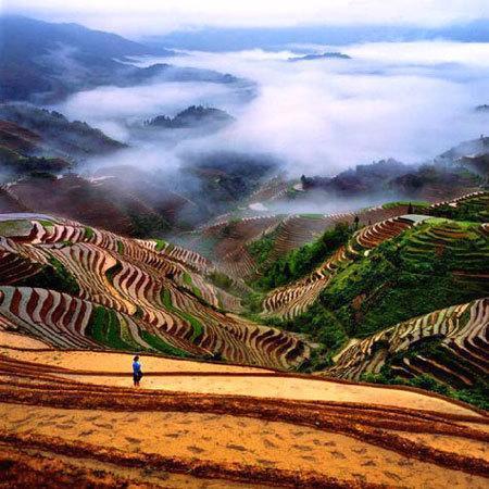 梯田的規(guī)模磅礴壯觀、氣勢(shì)恢宏,線條行云流水、瀟灑流暢,為天下梯田所望塵莫及;雖說南國山區(qū)處處有梯田,可是像龍脊梯田這樣大規(guī)模的集中實(shí)屬罕見。從流水湍急的河谷,到白云繚繞的山巔,從萬木蔥蘢的林邊到石壁陡崖前,凡有泥土的地方,都開辟了梯田。垂直高度達(dá)五六里,橫向伸延五六里,那起伏的、高聳入云的山,蜿蜓的如同一級(jí)級(jí)登上藍(lán)天的天梯,像天與地之間一幅幅巨大的抽象畫……每位看見這一景色的游客,心靈也都會(huì)被深深地震撼!這是一種難以言表的,一種被大自然的雄奇以及人的偉力所引起的震撼!