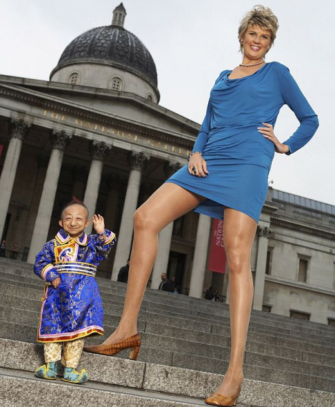 最長與最矮:世界上最矮小的男人和世界最長美腿擁有者、俄羅斯美女斯韋特蘭娜-潘克拉托娃