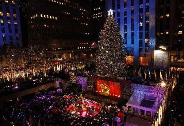 紐約洛克菲勒中心圣誕樹被點(diǎn)亮,在洛克菲勒中心豎起圣誕樹的傳統(tǒng)可以追溯到1933年,今年已是第77次。