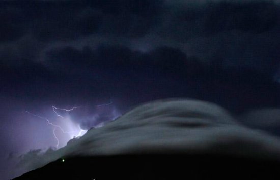 一道道閃電正穿過風暴云,擊向阿瓜火山。阿瓜火山距離危地馬拉城大約32公里。